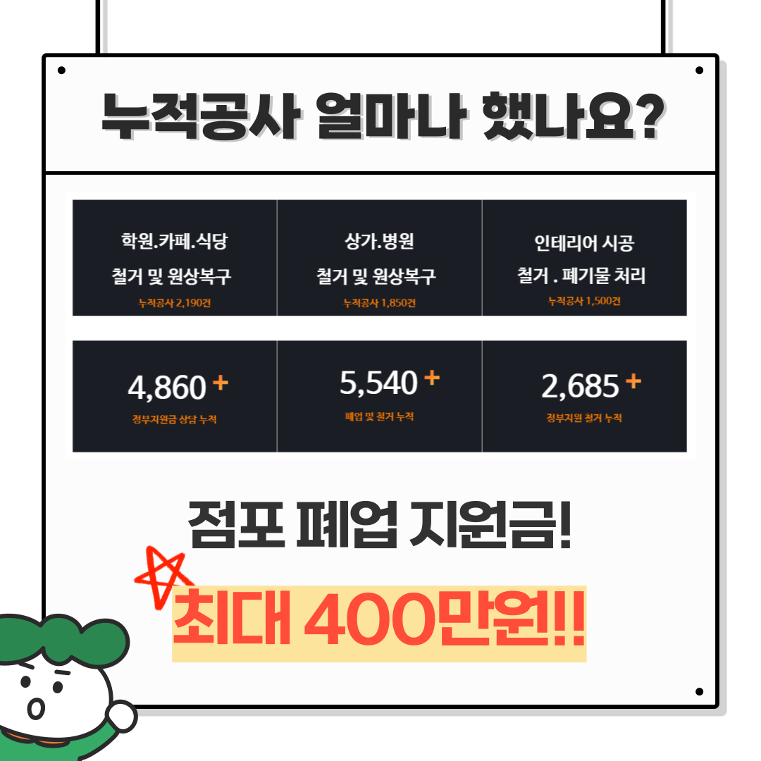 방이동 상가 철거업체 폐업정리 원상복구 비용절감 철거비 정부지원 빠른견적